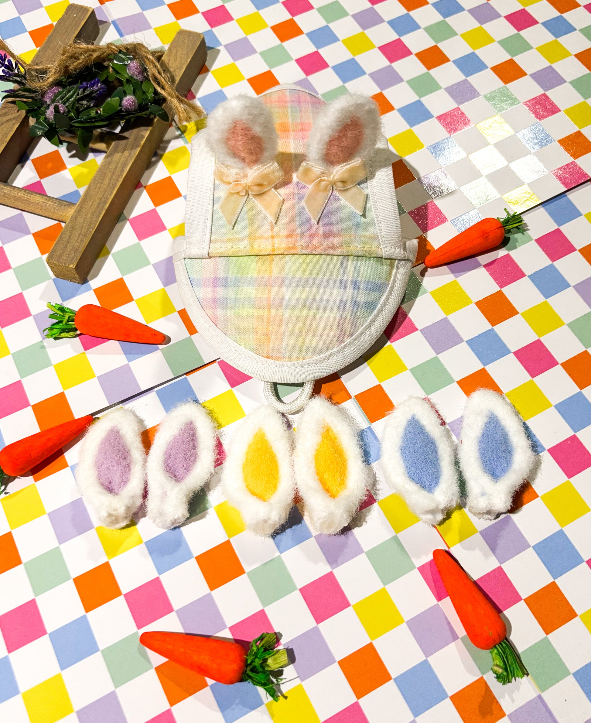 Mention in notes color of ear/and bows youd like. Limited quantities available.